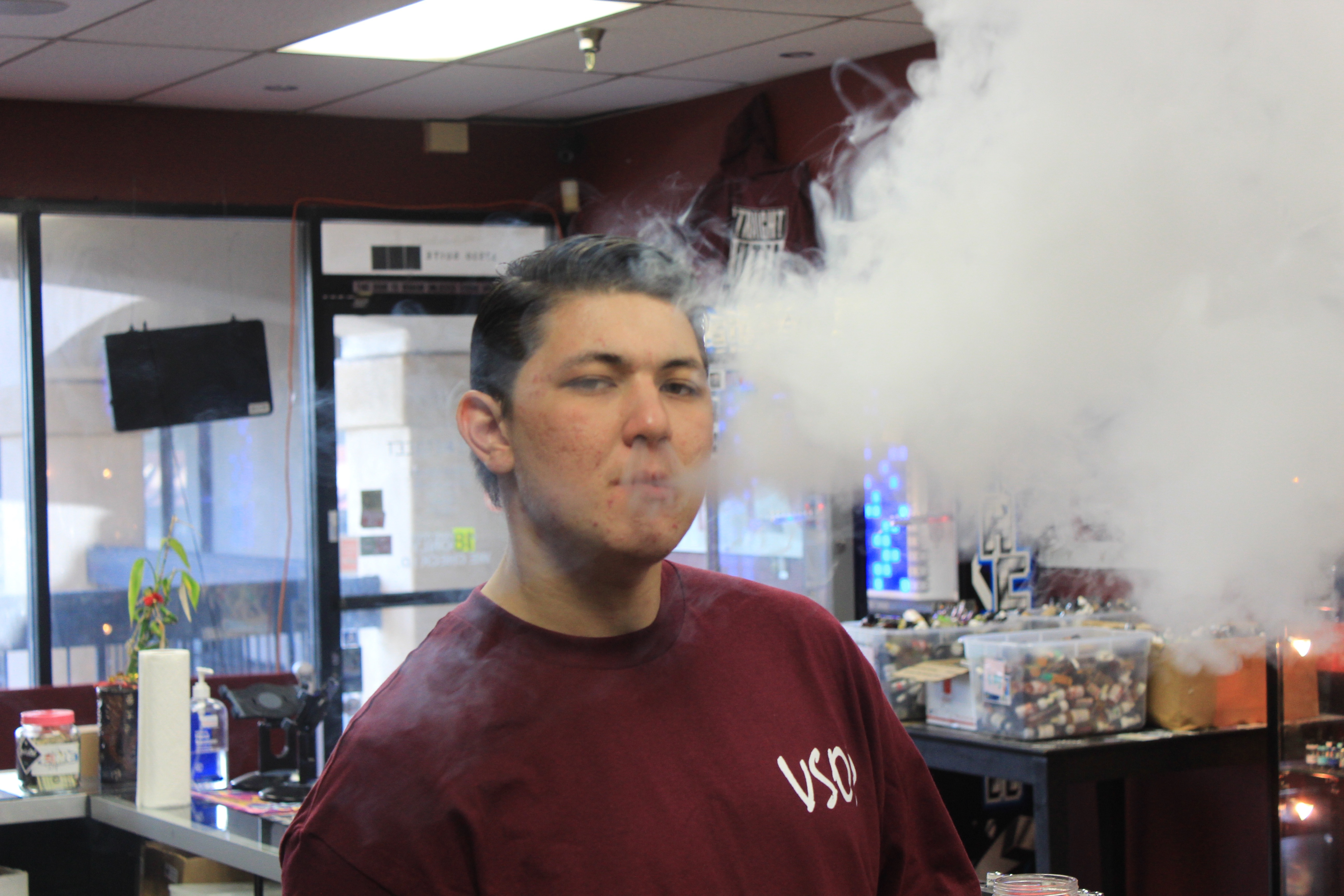 The man blowing the cloud is Matt. Definitely feeling himself.